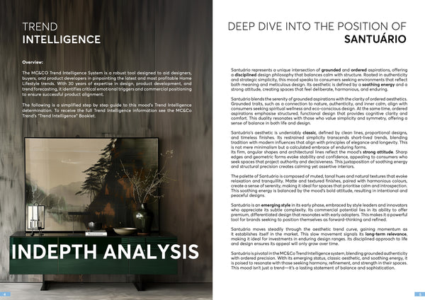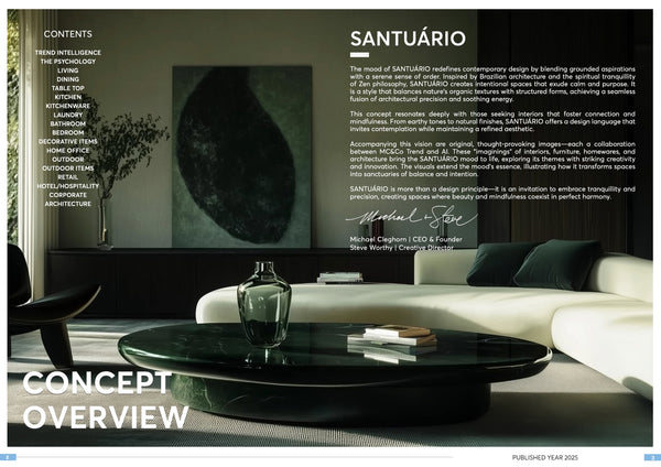 The Santuário Forecast offers over 150 pages of AI-enhanced, design-ready inspiration - crafted through the MC&Co Trend Intelligence System.